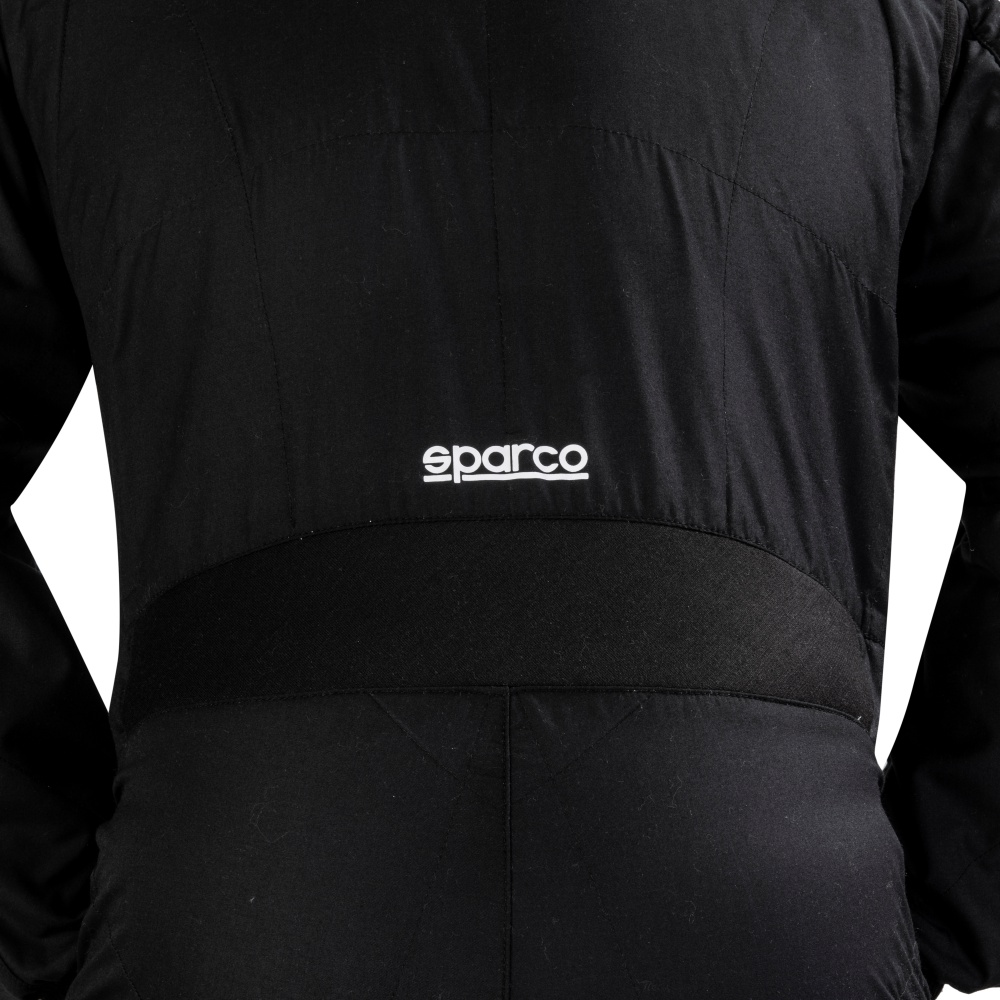 O fato Sparco Prime de duas camadas tem um fecho de correr ultraleve de duas vias.