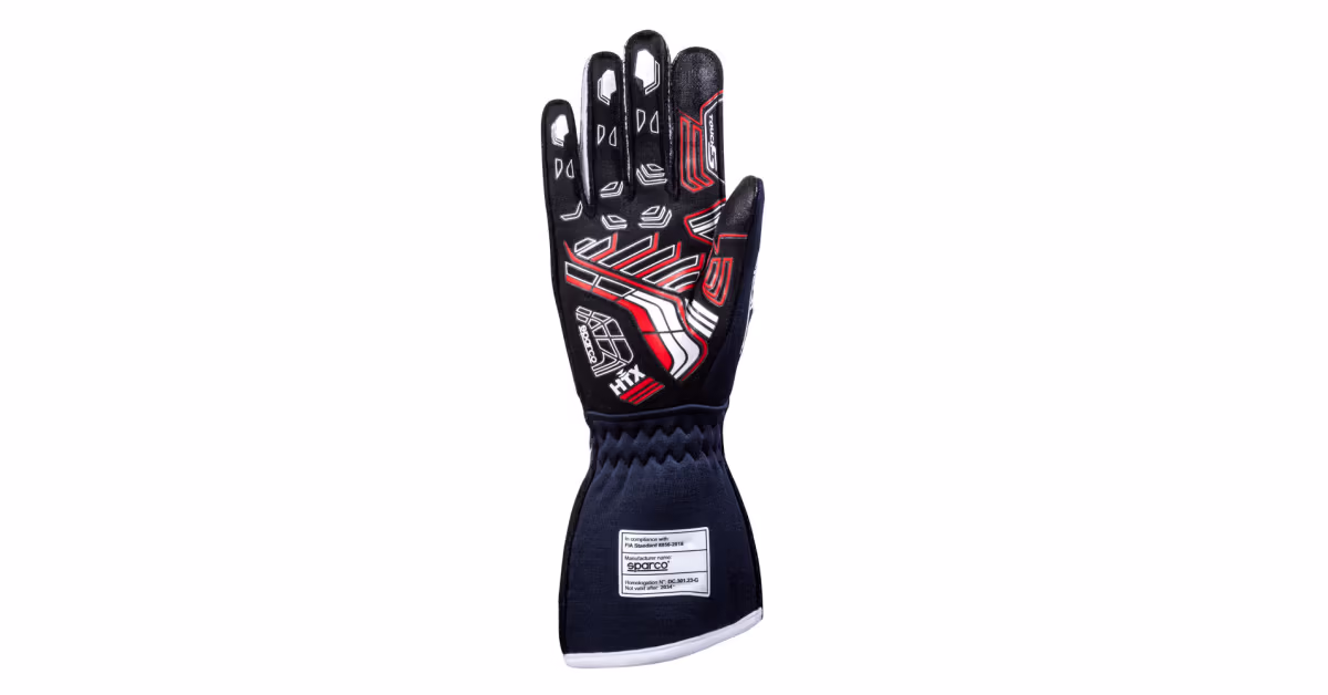 A palma destas luvas é feita de HTX Flat, a tecnologia de amortecimento de vibrações patenteada pela Sparco.